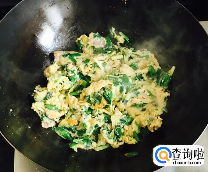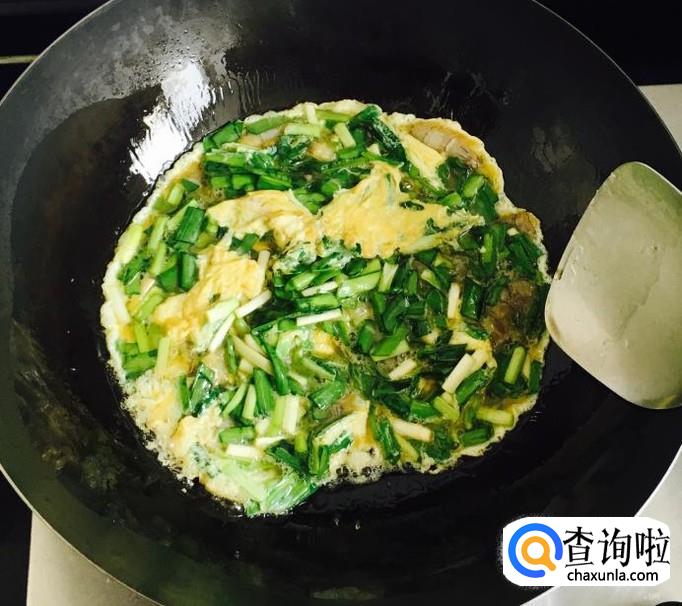待蛋液稍微凝固后用锅铲轻轻翻炒