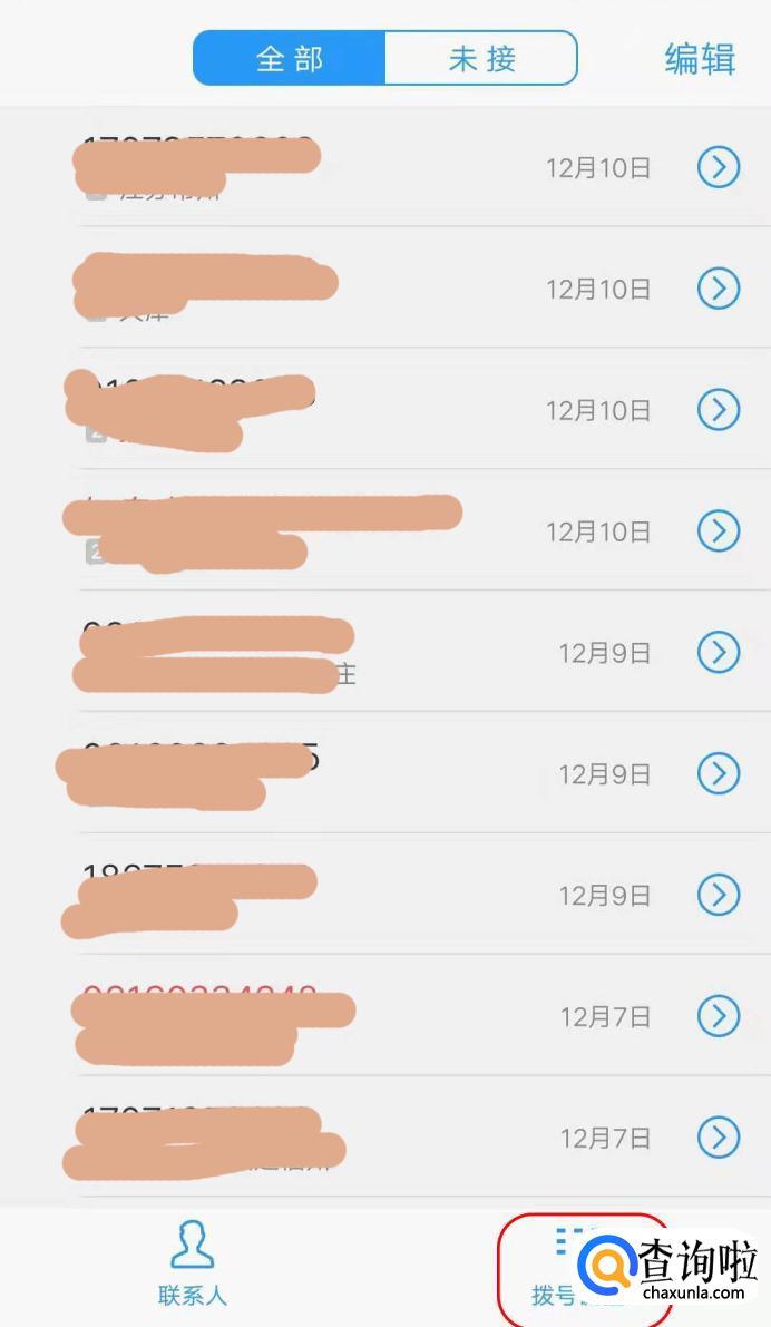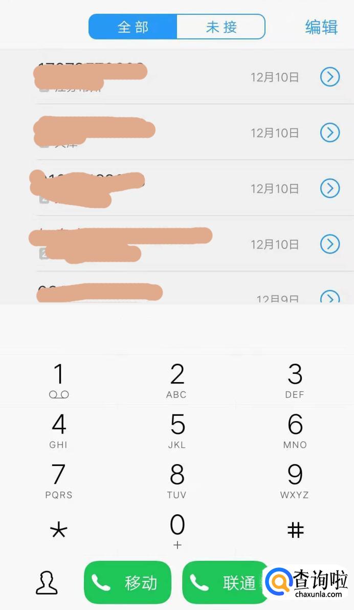 然后就进入了自己手机的通话记录里面,如果想要查询的号码在这里面,那可以直接查看;如果不在就要自己输入号码。