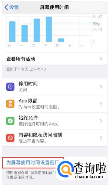 在此界面中,点击“为屏幕使用时间设置密码”,然后输入密码。该密码就相当于“应用锁”密码。