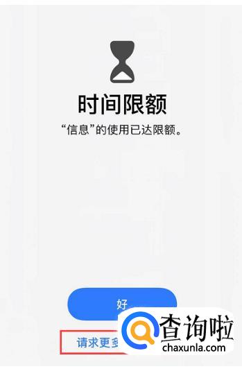 设置完毕之后,当您使用了应用 1 分钟之后,则会出现提示“已达限额”,您可以点击“请求更多时间”输入密码来继续使用。而其他不知道屏幕使用时间密码的人则无法使用。