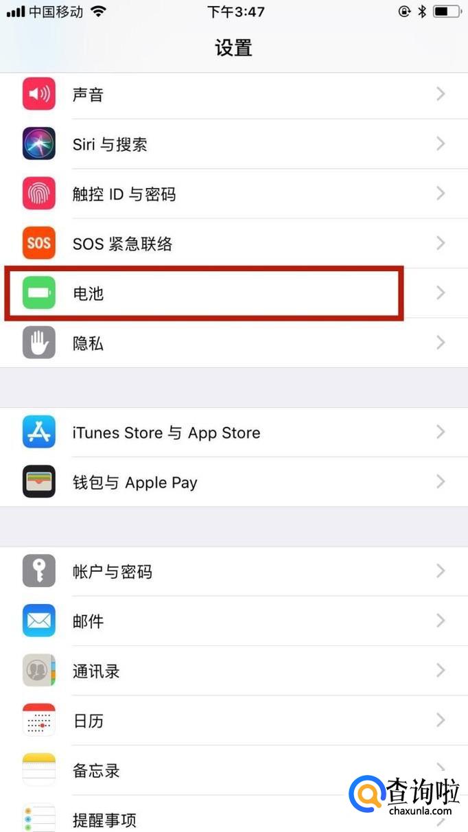 然后点击电池,如下图所示。