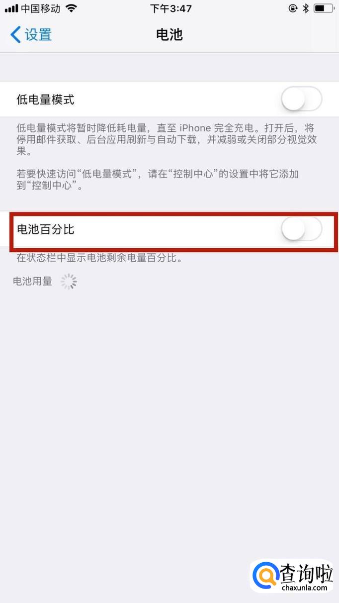 接着点击开启电池百分比开关,如下图所示。