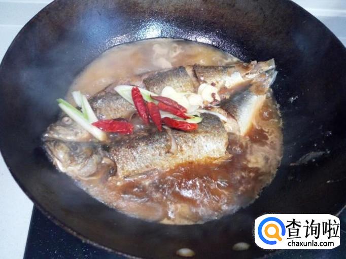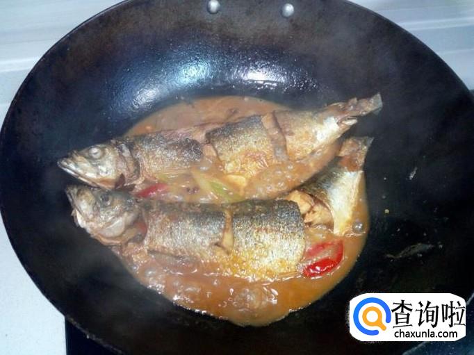 翻面煎塌至两面微黄,把调和好的料汁倒入锅中,略烧一会。