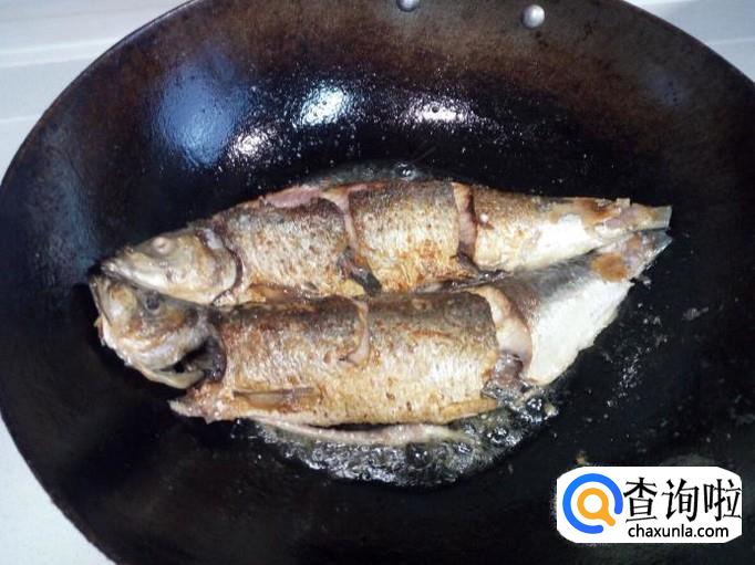 锅内放入油加热,油热后放入青鱼小火煎塌。