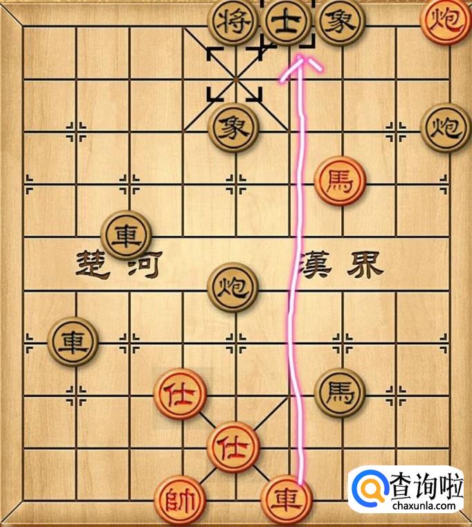由于我方炮已搭好炮台,所以我方车无所畏惧,植入九宫之中,与黑将四目相对,车4进9,吃掉黑士,将军。