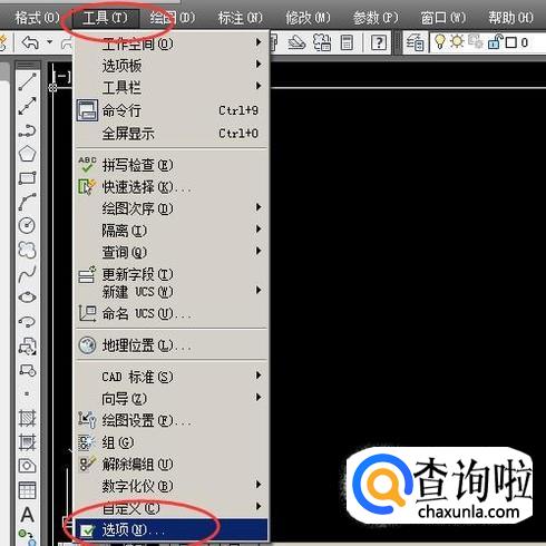 首先我们在打的cad文件中点击菜单栏中的工具选项卡,然后点击最下方的选项。