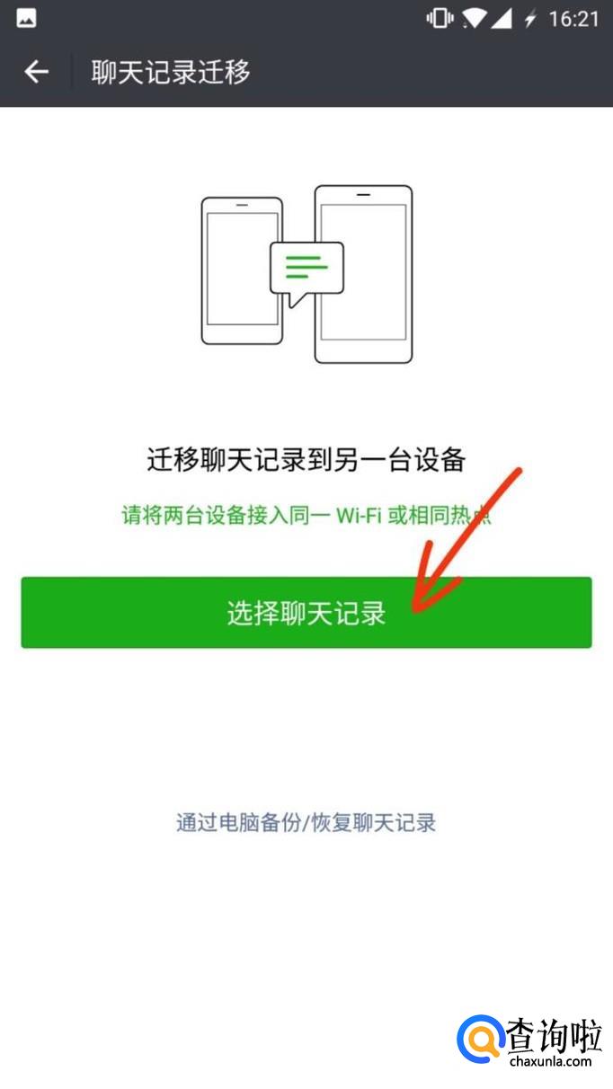 根据提示,用新手机扫描二维码就可以转移聊天记录了