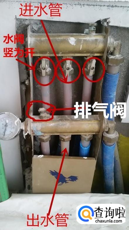 首先找到暖气的分水器,上面的是进水,低的是出水