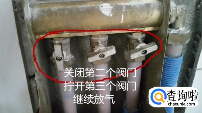 等气泡明显减少后关闭进水阀门,然后松开第二个进水阀门,继续放气