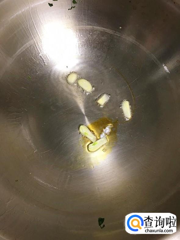 油锅烧热,蒜瓣去皮后切片,放入锅中炒出香味。