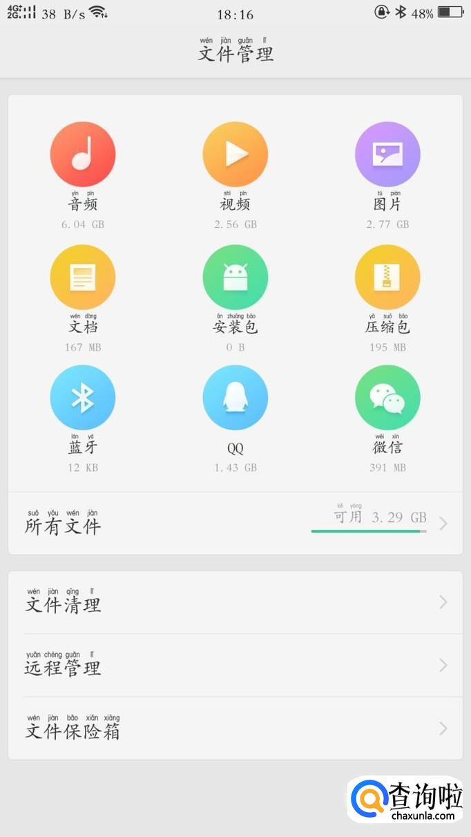 点击文档管理。每个手机都有这样一个应用,文档管理里面储存这我们手机使用的各种文件。