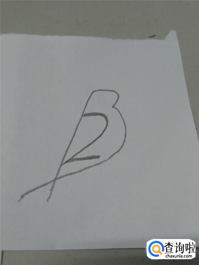 先用笔在纸上斜着写一个1,表示小鸟的背。