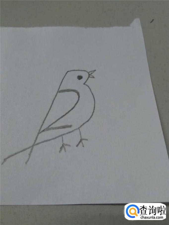 用笔在小鸟头上点一个黑点,表示眼睛。
