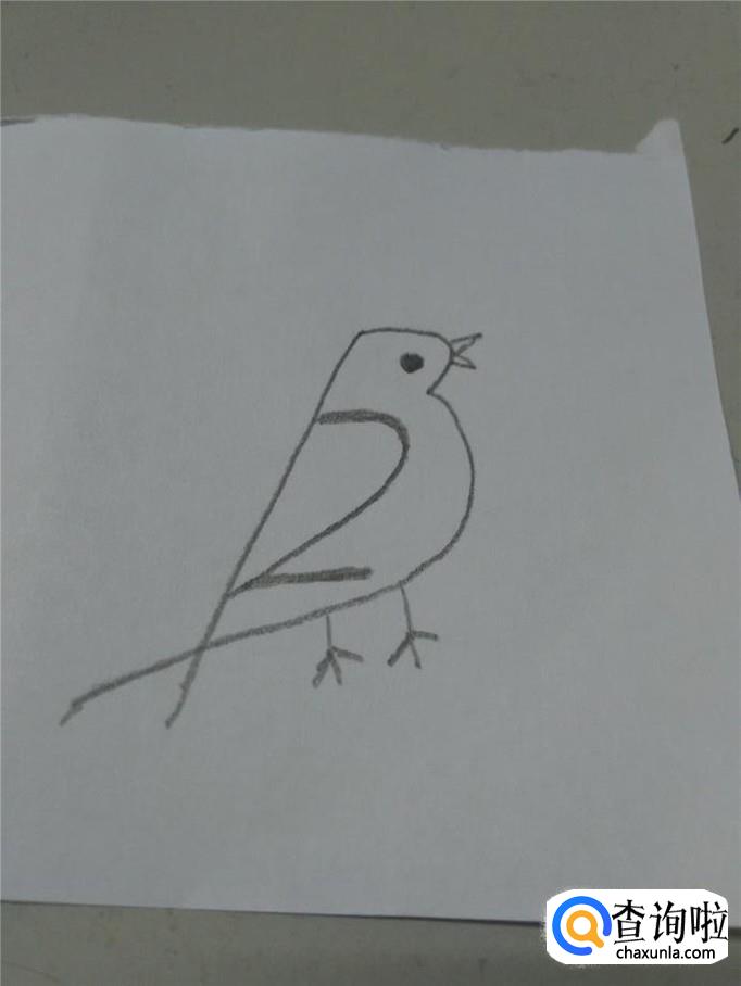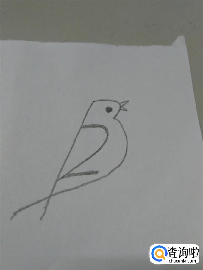 用笔在小鸟头部右面画两个小三角形,表示张开的小嘴。