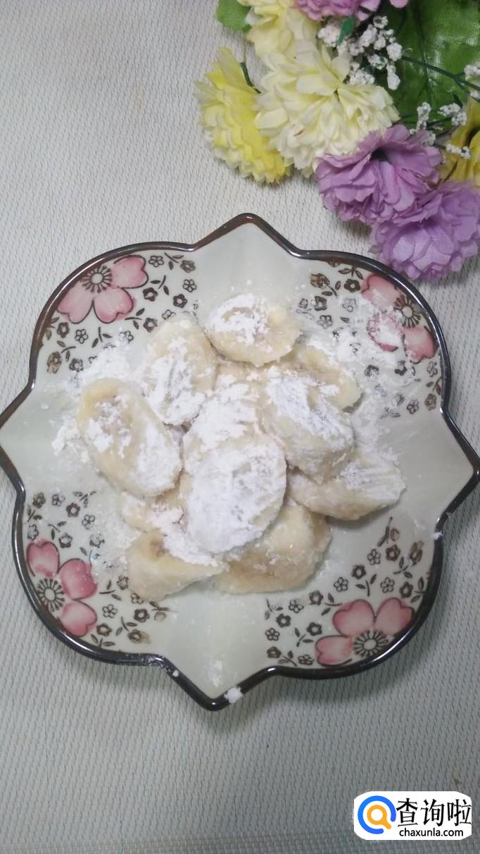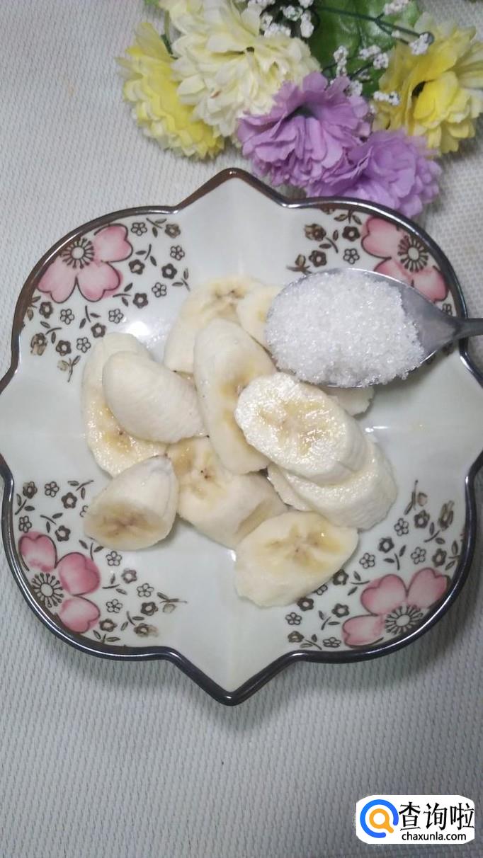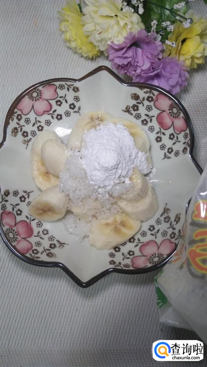 加入一勺白砂糖,香蕉本身富含糖分,加入一勺白砂糖,可以让外面裹的淀粉,更加香甜。