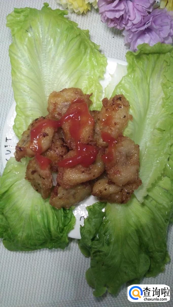 炸好之后,用笊篱捞出沥油,装入盘中。