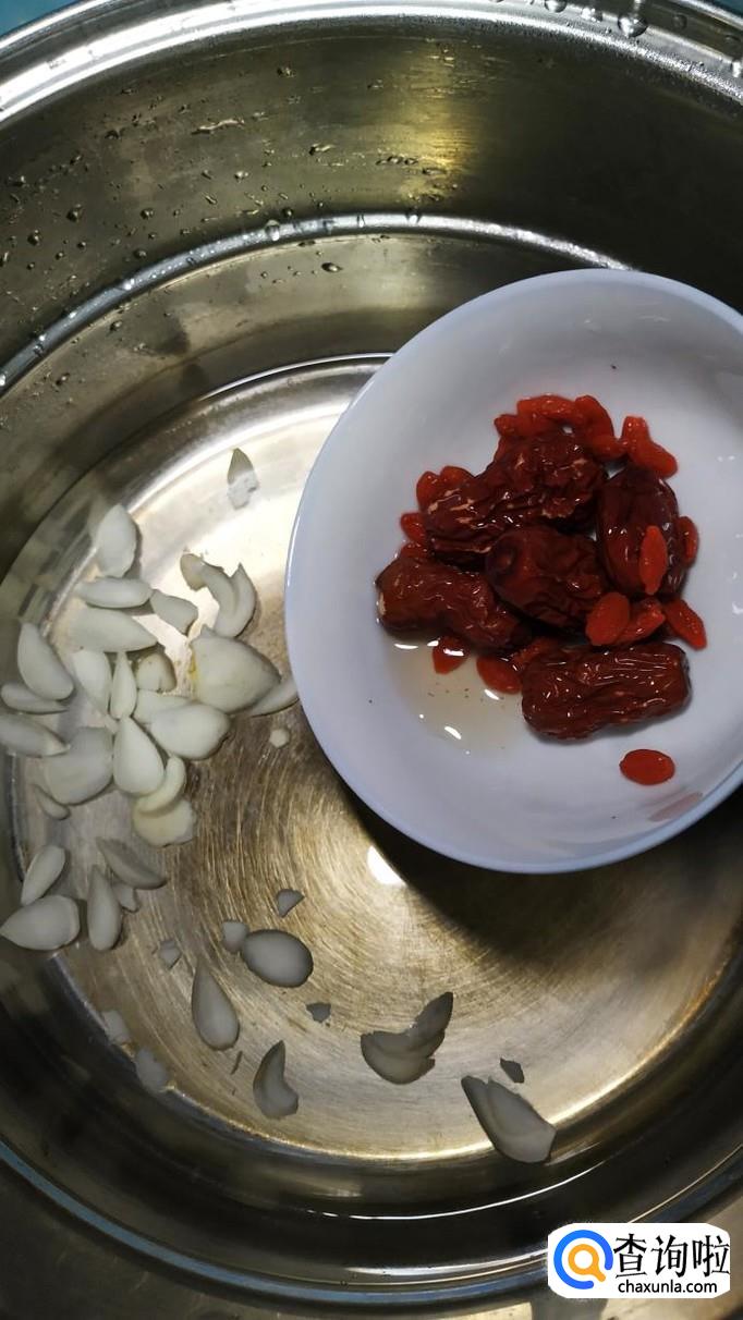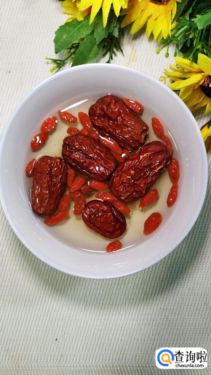准备适量百合,用清水泡一个小时左右,再准备适量枸杞子和红枣,用清水泡一会。