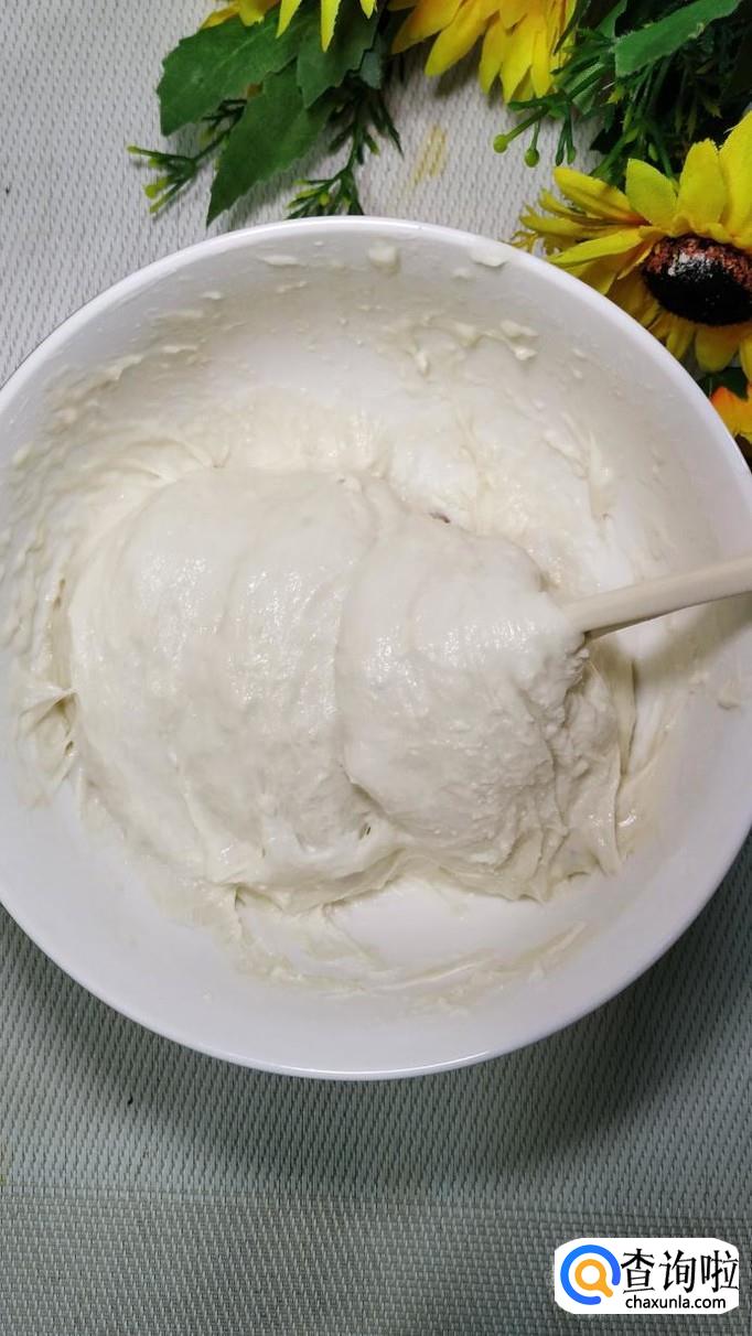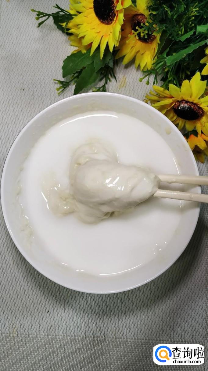 准备适量面粉,加少许清水,打成比较稠的面糊,大约放置20分钟左右,再用筷子使劲搅匀,这样便于面筋的生成。