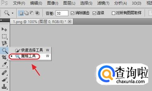 接着我们在左侧工具栏找到“魔棒工具”,点选素材图的背景,然后背景部分会被闪动的虚线包围起来,我们点击软件左下角的前景色,强前景色调整为我们需要的底色,比如红色;