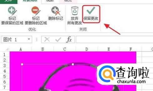 选中素材以后,我们依次点击“格式”--“删除背景”,然后将照片之前的背景色去除,此时照片整体会变成下图的颜色,我们点击“保留更改”即可;