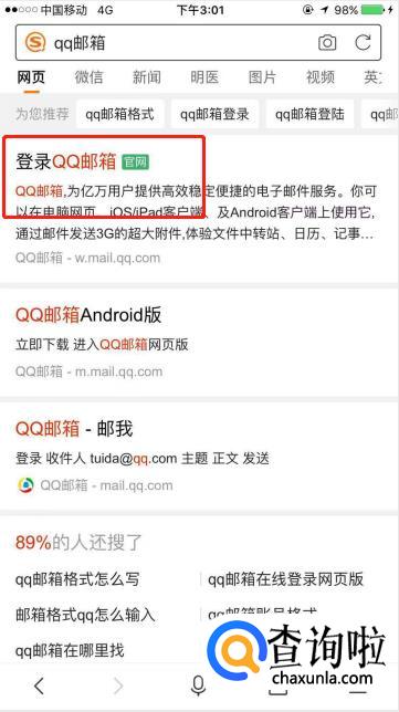 如果有的人内存不够,或者不想要安装QQ邮箱APP,就可以选择QQ邮箱网页版。首先需要在搜狗浏览器搜索QQ邮箱,点击进入官网。