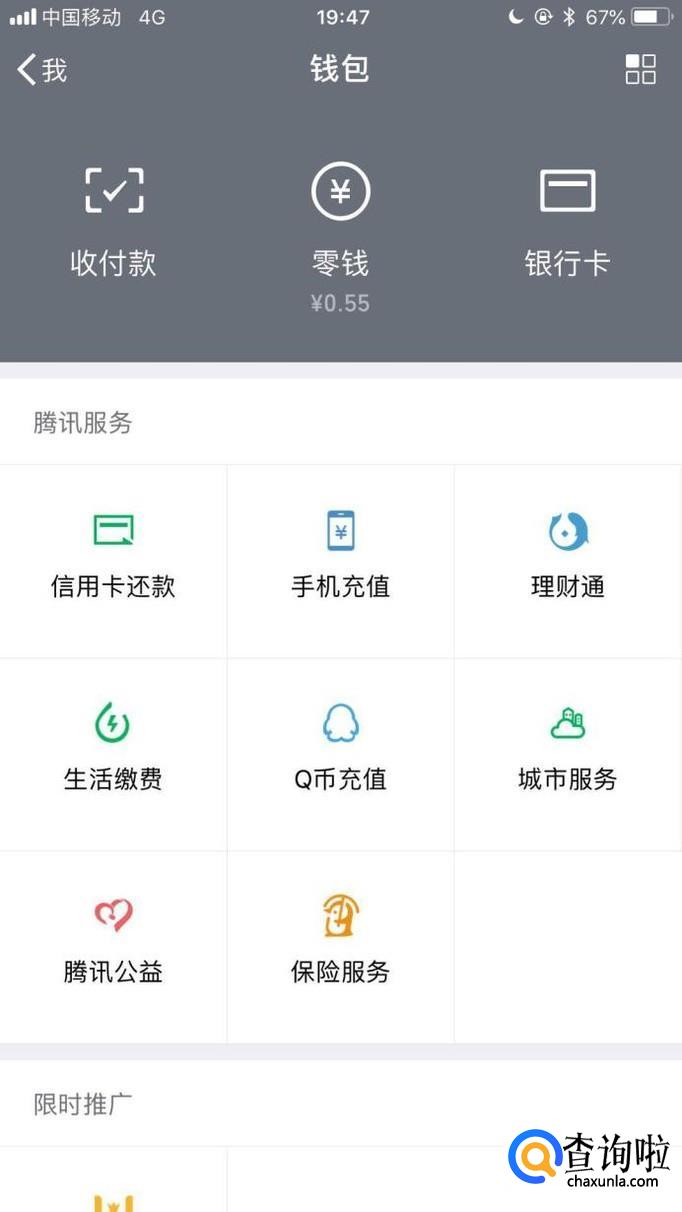 首先在我们的微信中找到钱包并点击它,如下图所示。