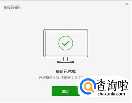 备份完成,在电脑微信上点击确定,如下图所示。