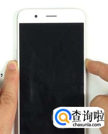 关机之后,同时按住开机键和音量减键,如图所示。