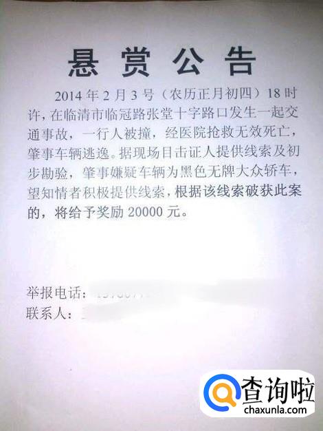 如果找一着特殊的人(比如说肇事逃逸者),我们也可以写上悬赏信息,这样子传播速度会更快。
