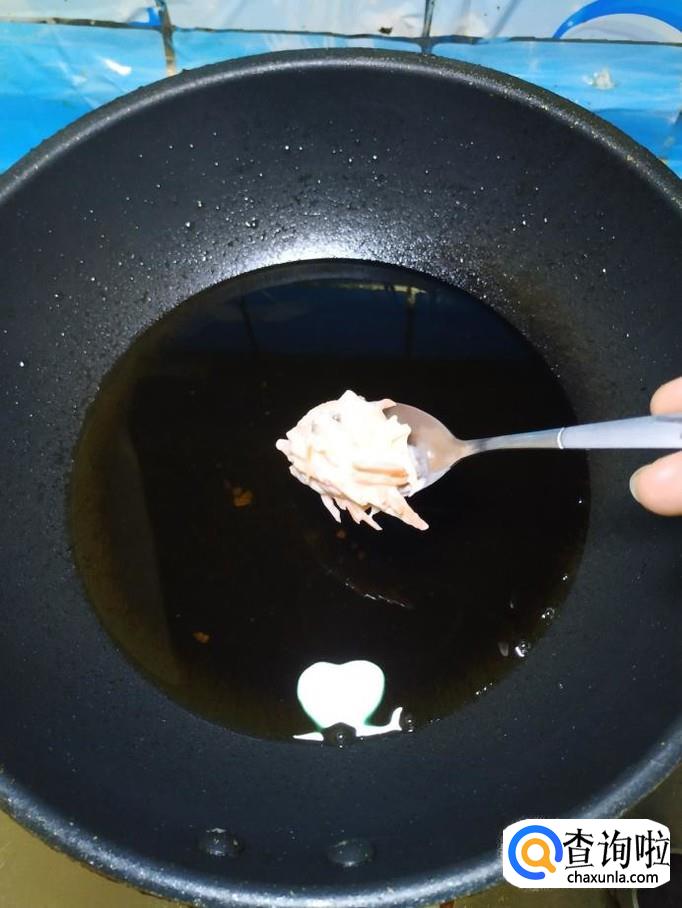 炒锅中放入适量油,油热后,用勺子挖成丸子状,放入锅中,全部做成丸子,小火慢炸。