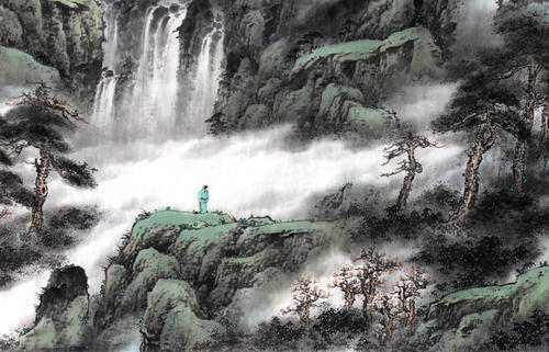 第三句又极写瀑布的动态。“飞流直下三千尺”,一笔挥洒,字字铿锵有力。“飞”字,把瀑布喷涌而出的景象描绘得极为生动;“直下”,既写出山之高峻陡峭,又可以见出水流之急,那高空直落,势不可挡之状如在眼前。然而,诗人犹嫌未足,接着又写上一句“疑是银河落九天”,真是想落天外,惊人魂魄。“疑是”值得细味,诗人明明说得恍恍惚惚,而读者也明知不是,但是又都觉得只有这样写,才更为生动、逼真,其奥妙就在于诗人前面的描写中已经孕育了这一形象。