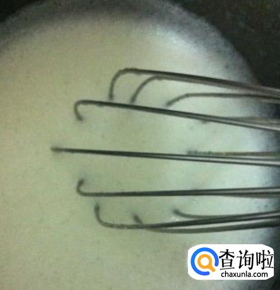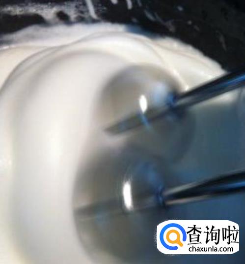 继续打,打倒这些泡沫基本上成为固体就差不多了。这时候还需要加一勺白糖。