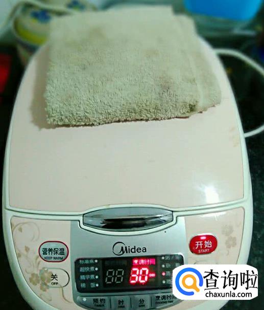 注意电饭锅的出气孔要用毛巾堵上。保温状态闷20分钟。