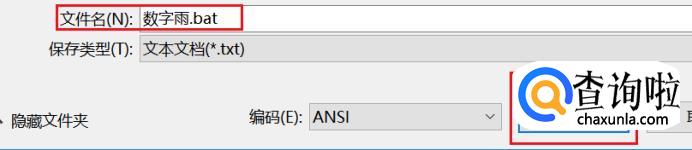 把文件名改为“数字雨.bat”,注意:后缀名一定要为“.bat”,点击保存。