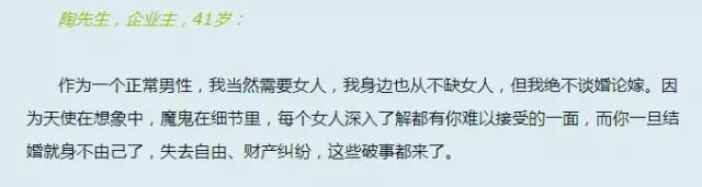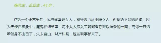 而这类单身女主要分为两类,1没结过婚,2离异。没有婚姻经验的单身女性,过去的情感经历成为她们单身的一大主因。而在离异群体中,单身女性现象更为突出。多数离异女性,在离婚三年以后才会再婚。几乎很难遇见离异后,三个月内再次结婚的女性。不同的是,很多男性在离婚两年内后,就会再次找到相处对象,甚至结婚。