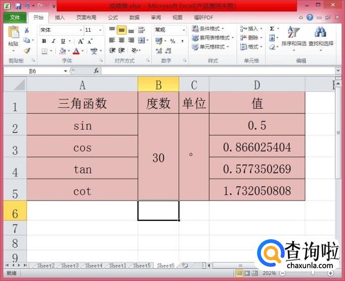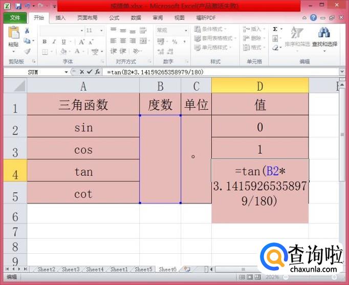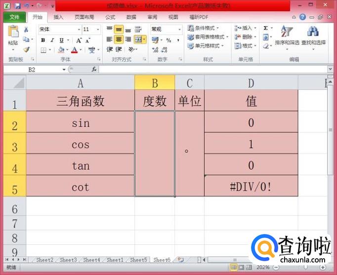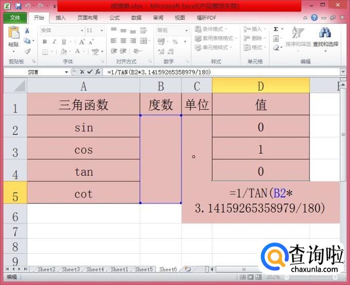 在B2单元格内输入任意的一个角度,都可以瞬间算出它的SIN、COS、TAN、COT,是不是超级便利呢!