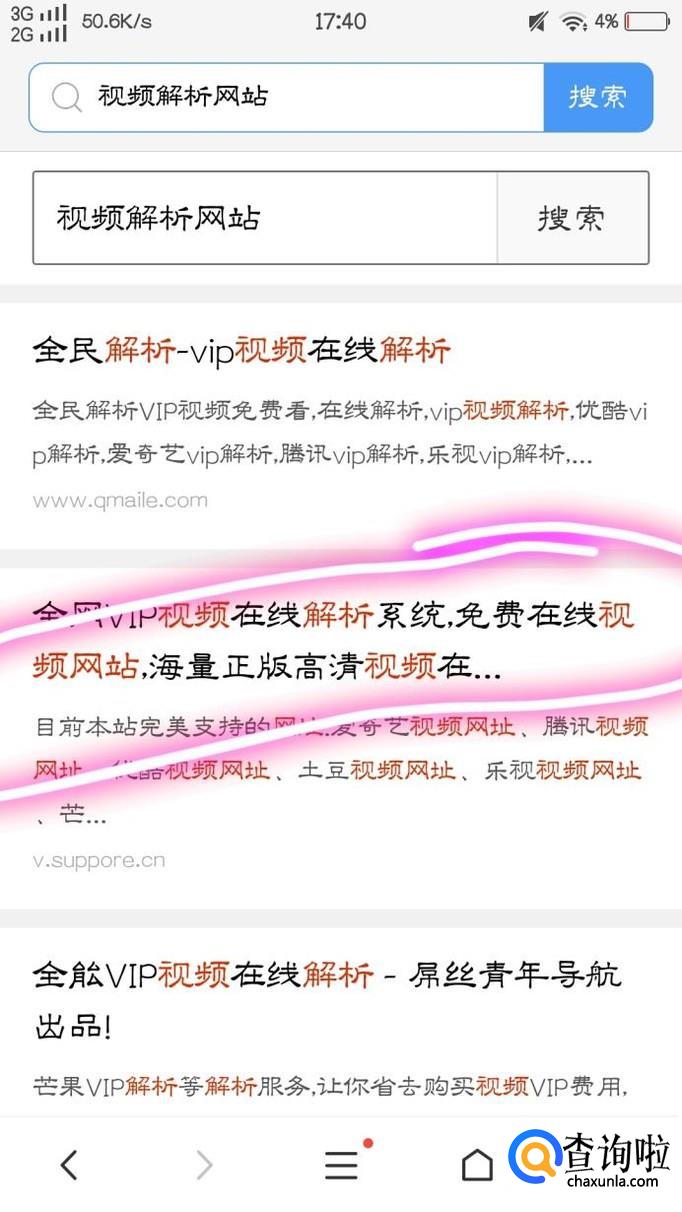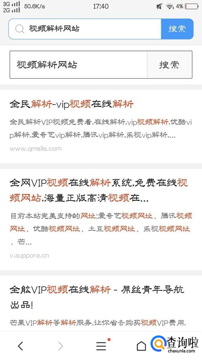 紧接着,复制完链接后,我们在浏览器中搜索“视频解析网站”