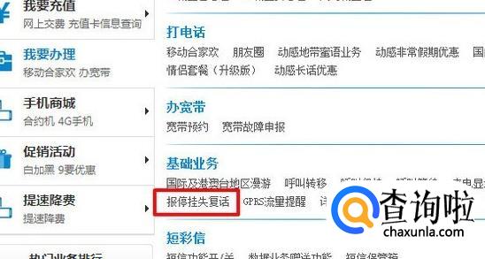 在办理业务页面点击下面的“报停挂失复活”,如下图所示。