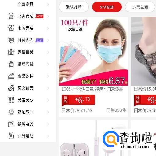 先看天天特价,都是一些9.9元就包邮的小东西,看左边可以自行选择需要买的品种。