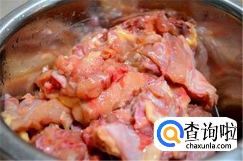 鸡架一般都是冰冻过的,买回来之后自然解冻,然后放在清水里清洗干净,切成小块。也可以在买鸡架的时候麻烦老板帮你切。