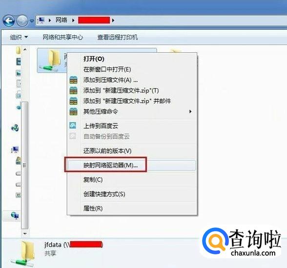 登录成功后,找到共享文件,鼠标右键单击,选择“映射网络驱动器”