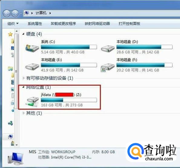 操作完成,重新进入“我的电脑”在“网络位置”一栏就可以看到网络磁盘了。
