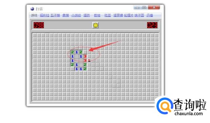 鼠标右键点击一下,会出现红旗,代表雷区。比如在下图中,红色箭头指向的地方可以判断是雷区,我们可以右键,插上一朵红旗