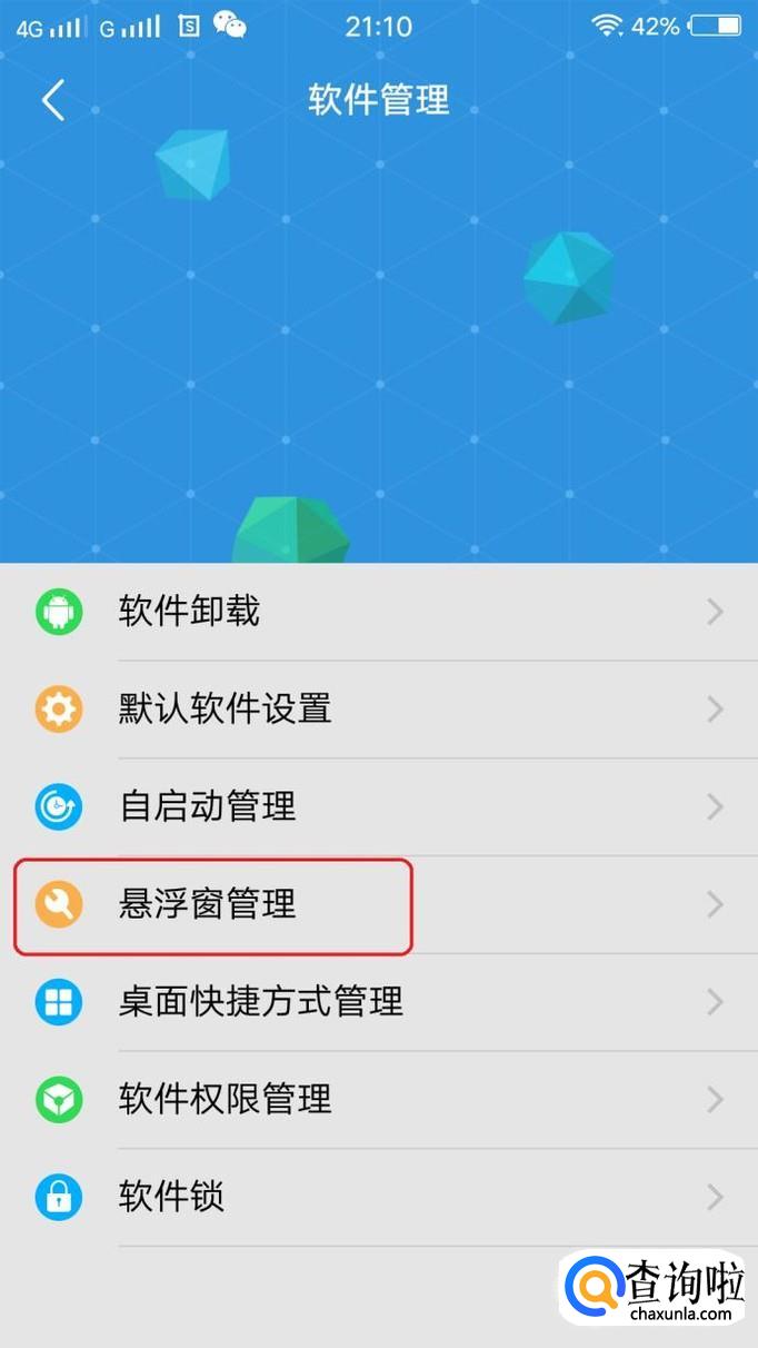此时,就能看到“悬浮窗管理”选项了,如图所示,我们点击进入。