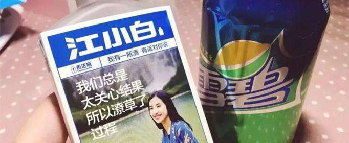 电影《前任3》里面有这样一个片段:分手后需要喝一杯“江小白配雪碧”这样就能感受到前任的眼泪。