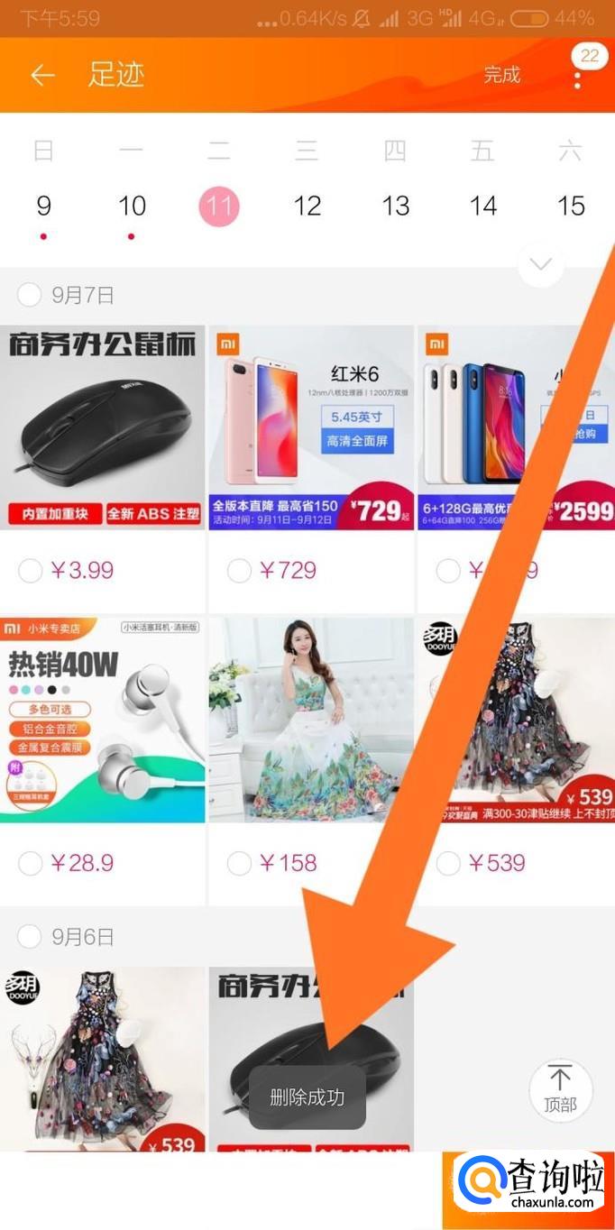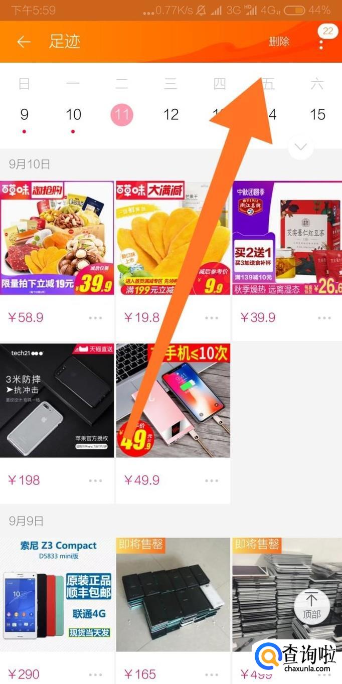 再点击足迹页面右上角的“删除”字样。