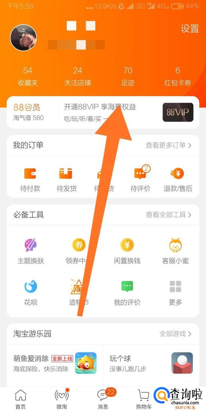首先点击进入“我的淘宝”页面。