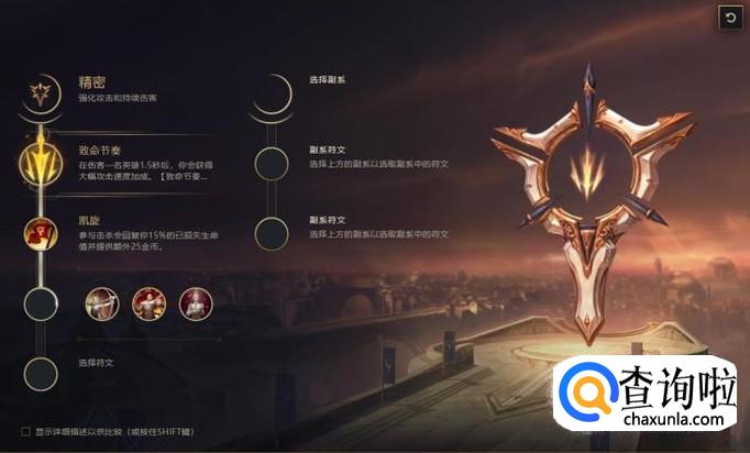 首先主基石符文选择精密,精密可以增加攻击力,这是大多数AD都会带的