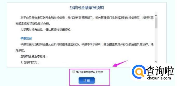 我们接着点击“举报”,同意条款,如图所示。