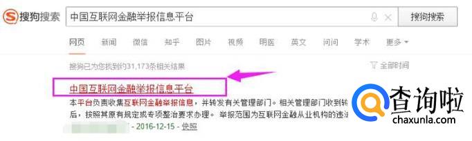 出现的网页中,我们点击第一个“中国互联网金融举报信息平台”,如图所示。